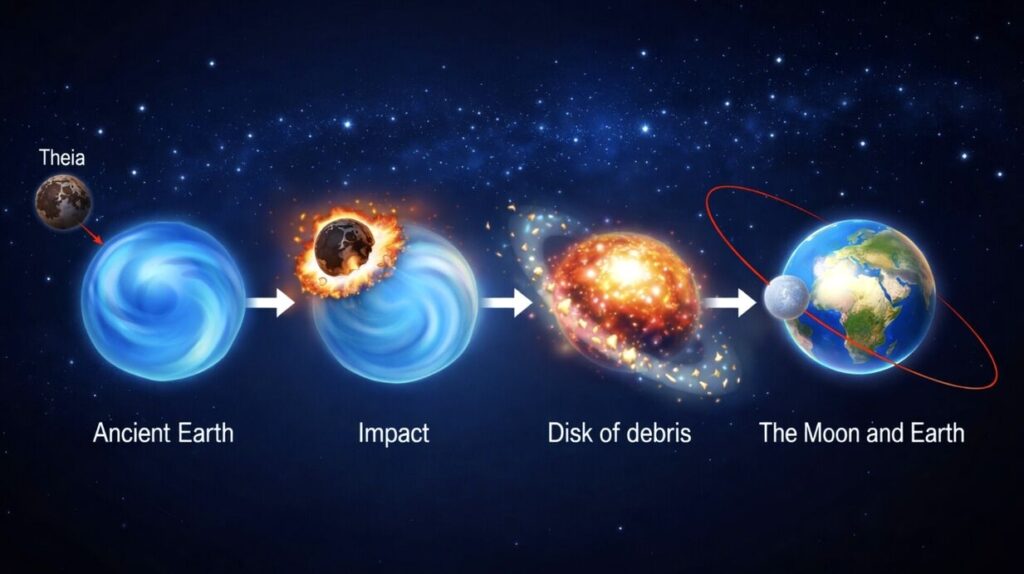 यह पूरी घटना हमारे अपने सौर मंडल के इतिहास से काफी मिलती-जुलती है। लगभग साढ़े चार अरब साल पहले हमारी पृथ्वी के साथ भी एक ऐसी ही टक्कर हुई थी, जिससे चाँद का निर्माण हुआ।